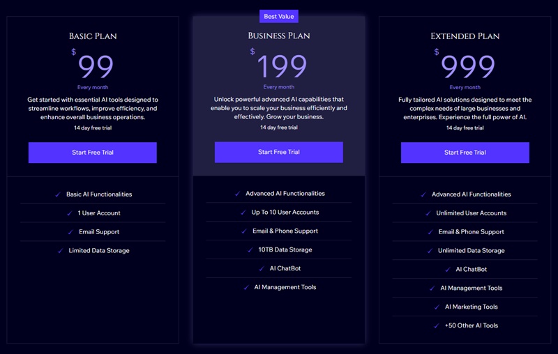 Carefully selected imagery, including abstract AI visuals, data-driven graphics, and sleek interface elements, reinforces credibility while capturing user attention from the very first interaction. The homepage includes various sections with smooth animations, which create an excellent first impression for site visitors.