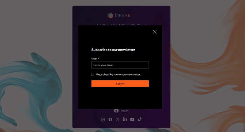 The subscription form will appear in the lightbox once users click the Subscribe button. This form is also fully customizable.