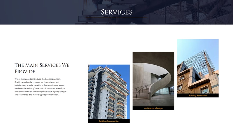 You can place all services you provide in the All Services section. The FAQ section of our Wix Construction template is a great way to answer the top questions your potential clients have. All of these sections are fully customizable, so you can change the default content and design.