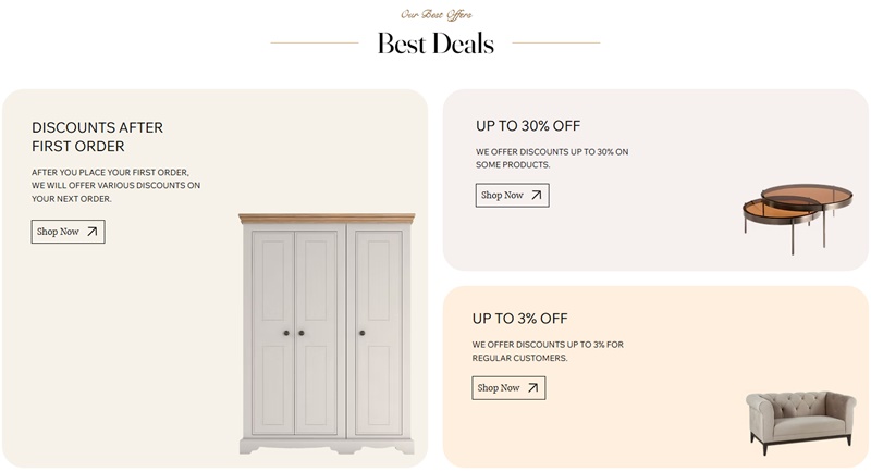 The Best Offers page consists of two sections: Best Deals and Discounted Items. The Best Deals section is a great way to let your website visitors know about the best deals and discounts. For example, you can offer a discount after your customers make their first order.
