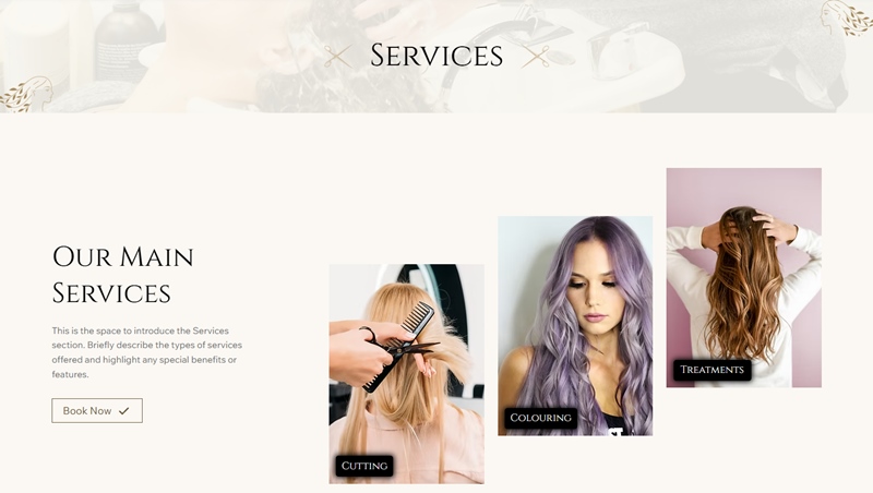 In conclusion, the Wix Hair Salon template’s clean, modern visual aesthetic pairs with practical features to create an online presence that feels both welcoming and professional. Its design helps tell your salon’s story, highlight your service expertise, and make it easy for clients to take the next step — whether that’s booking an appointment or getting in touch.