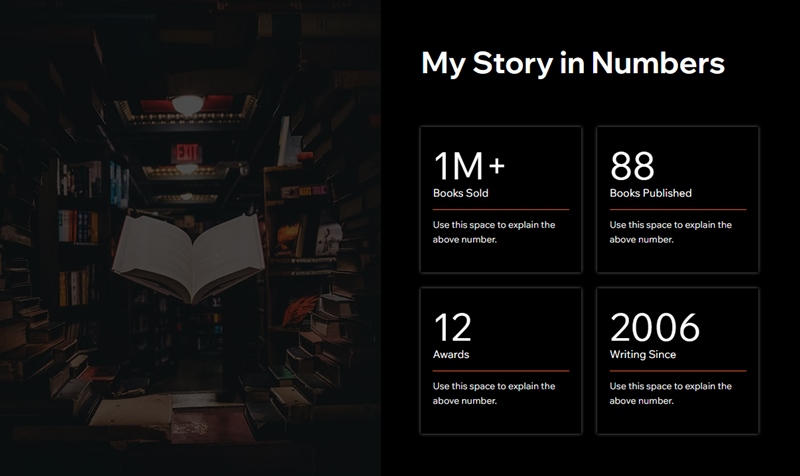 The Wix Writer & Author template includes a ready-made About page that will allow you to showcase not only your books, but yourself as well.