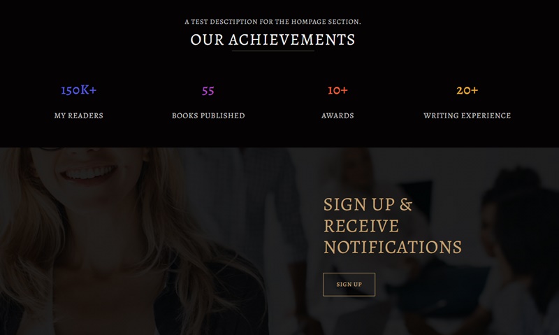 The WordPress Author: Writer WDA theme has a powerful and well-designed homepage that creates a great first impression on your website visitors.