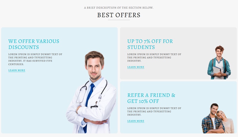 The layout is fully responsive, meaning it adapts seamlessly to desktops, tablets, and smartphones - an essential feature since many users search for healthcare services on mobile devices.