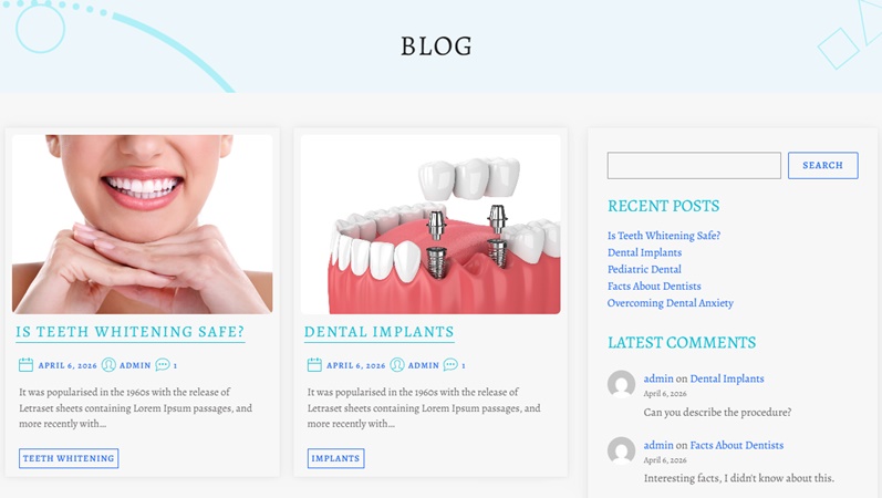 This section helps clinics educate patients on oral health while also improving search engine visibility through fresh, relevant content. Overall, the blog page enhances credibility and keeps visitors informed and connected with the practice.